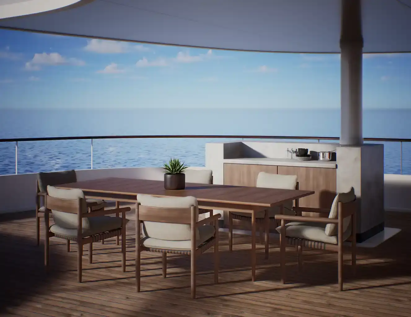 The Owner’s Suite will span 1,950 sq. ft. and feature a 1,965 sq. ft veranda, offering an expansive, refined layout designed for comfort, personalization and immersive travel.