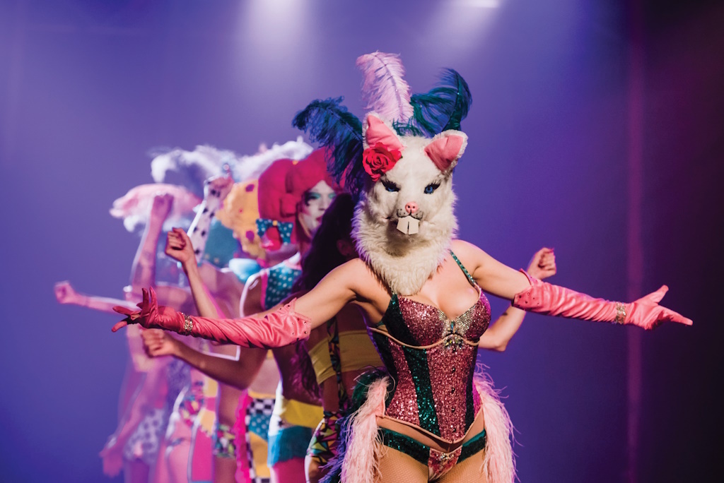 FEATHERS ARE FALLING FROM OVERHEAD. Soft, white feathers land on our heads and shoulders, flung by four energetic performers hovering above us at the culmination of LIMBO - the Return. An intoxicating mix of circus, cabaret, acrobatics and music it's been performed everywhere from Brussels to Bogota.