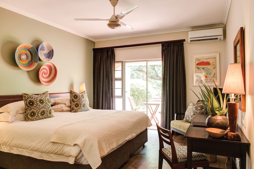 While each of the rooms and suites enjoys a lovely view, you’re likely to spend the lion’s share of your time in the communal spaces. When the sun is shining, terraced, palm-lined grounds with a small swimming pool, curvy benches wrapped around a fire pit, lounge chairs, and a barbecue, are all perfect for a South African braai (which staff can arrange).