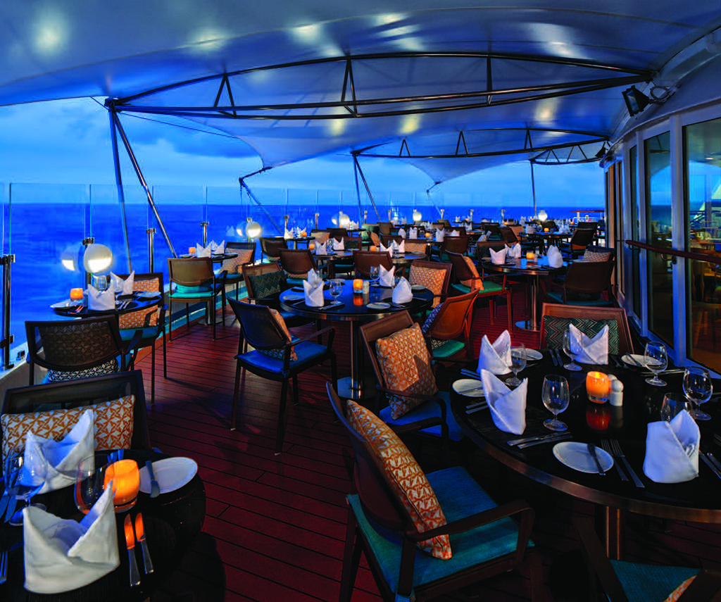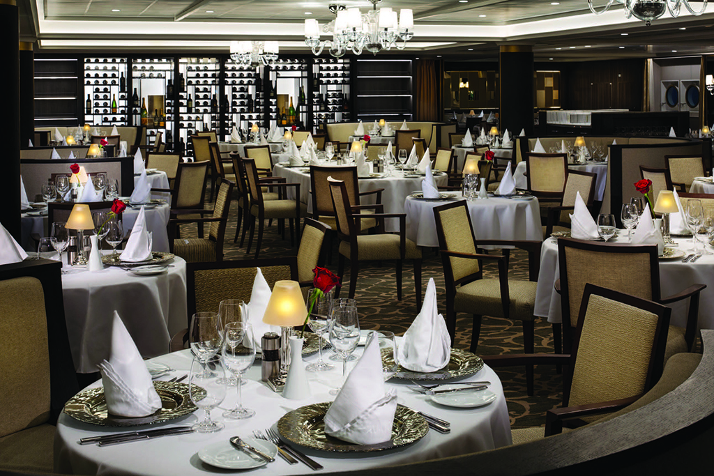 When you’re in the Med, however, enjoying balmy, warm weather, one of my favourite spots is the Veranda outside on Deck 7 aft, which becomes Candles in the evening. Savouring a buffet lunch (staff serve everything to you these days), while sipping a glass or two of rosé is a treat while at night, the smallish Candles menu, consisting primarily of steaks and seafood and some salads and sides, is very popular and by reservation only. The dress onboard is casual at all times, so gentlemen wear a shirt with a collar and sleeves and long pants at dinner but otherwise, whatever pleases you is just fine, as long as it is in good taste!