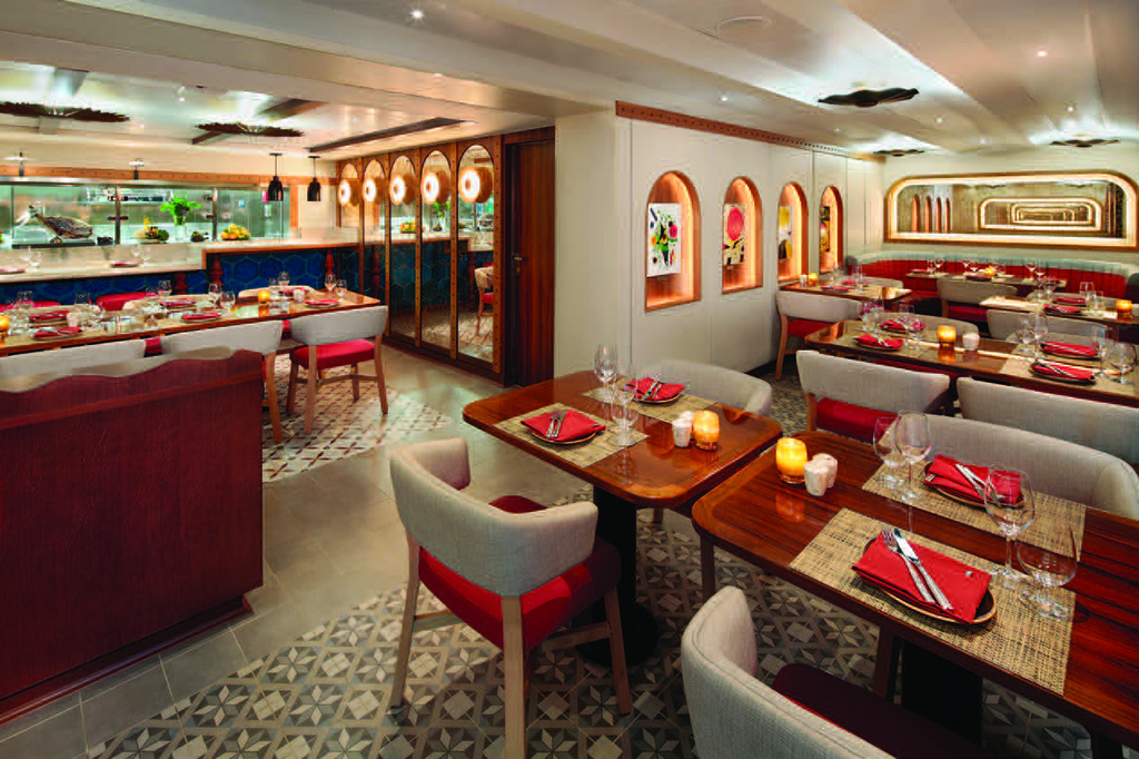 Some of the highlights for me were the expanded indoor and outdoor deck space and the terrific new pool, which was well-used and positioned perfectly on Deck 7. The food was delicious throughout the ship and in every dining venue. The addition of the intimate, small plate Spanish restaurant, Cuadro 44, with its Michelin-starred Chef Anthony Sasso, is another close tie to Windstar’s relationship with the James Beard Foundation. This fabulous culinary association makes a great deal of sense. Dishes from the array of James Beard Chefs appear nightly at Amphora, the main restaurant, which is in the new section. Its delectable food, elegant décor and muted colour scheme made it a frequent choice for dinner.