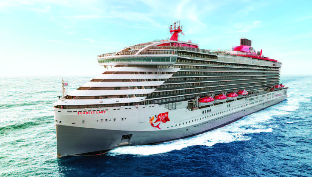 Scarlet Lady is 110,000 gross registered tonnes with a capacity for 2,770 sailors and 1,160 crew. Her exterior sports the trademark Virgin red hue and logo, and her bow is adorned with the ship’s namesake mermaid brandishing the Virgin flag.