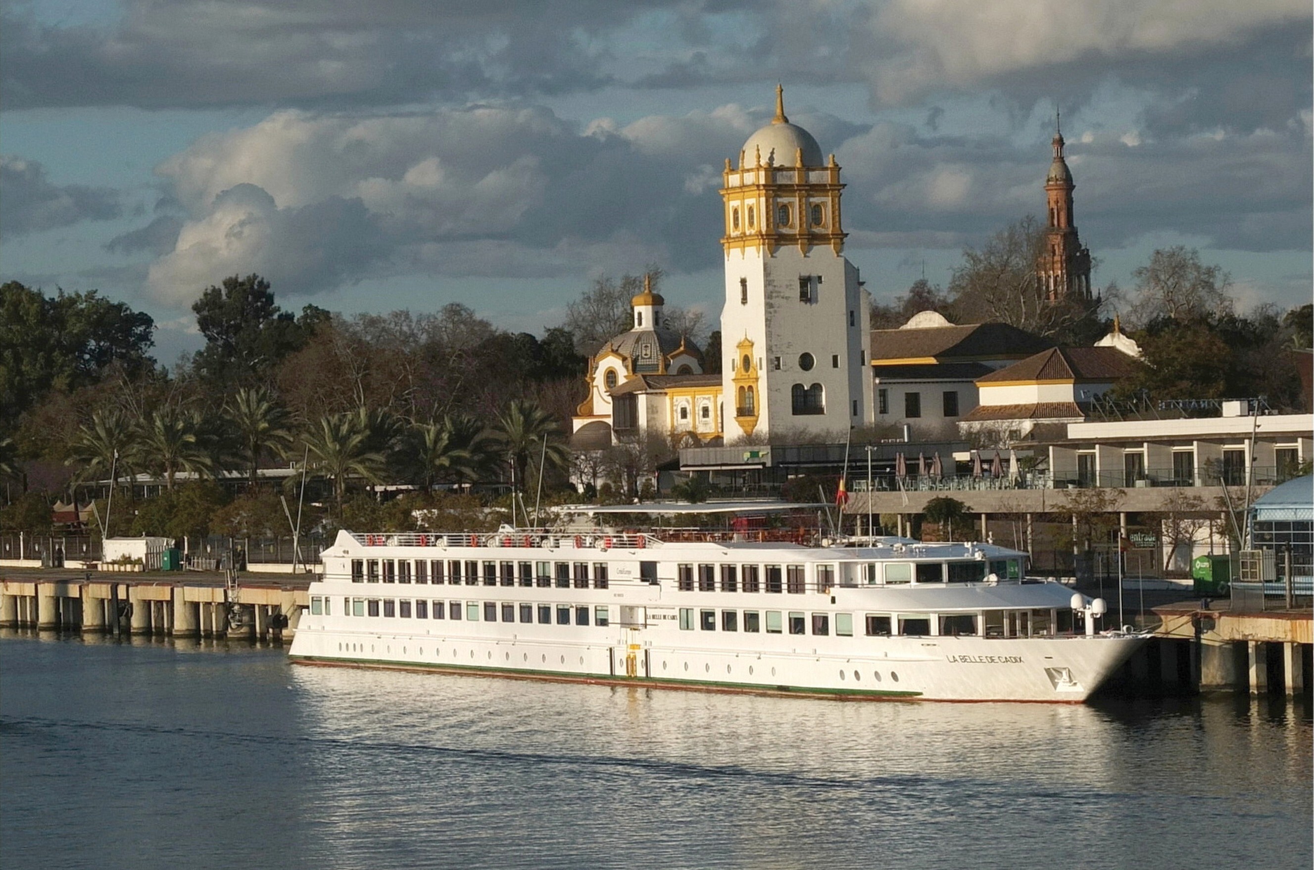 CROISIEUROPE's elegant cruise vessel, La Belle de Cadix, is at anchor on a crisp February afternoon, picture perfect on the Guadalquivir River in Seville. Sixty miles south, a choppy Atlantic Ocean is preventing access to the Bay of Cadiz, holding us here an extra day. But if an extra day must be spent somewhere, nowhere is more congenial than this handsome Andalusian city, providing the bookends for this brief, six-day river cruise. Even on a February weekday, we are reminded of Seville’s status as a headline Spanish destination. Visitors of all nationalities are seduced by its plazas, flower-filled patios, signature ochre-coloured buildings, patisseries, bookshops, hat makers, museums, monuments and bodegas. Steering a course away from these immediate attractions, there is a labyrinth of narrow streets and plazas peppered with orange trees. Always an elite society, Seville’s unique status and place in Spanish history is reflected in its architecture, elaborate municipal design and manicured gardens.