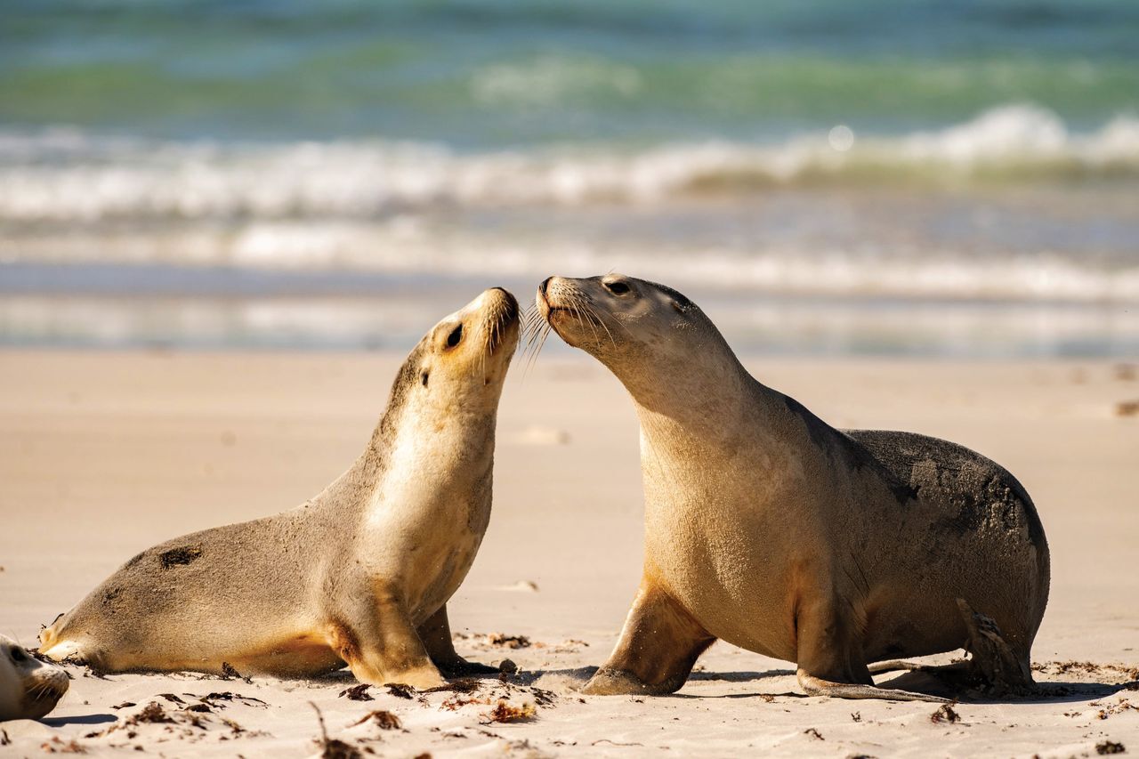 As the Mercedes SUV glides along the limestone roads toward Seal Bay on the island’s south coast, we have our first animal encounter – well, second, after our resident kangaroos. Seal Bay turns out to be not full of seals, but of the endangered Australia sea lion instead. We are visiting the pinnipeds’ breeding colony – walking right into their sandy bedroom, so to speak. We find dozens of them, pups and parents, sheltering in the dunes or basking on the beach. The females forage for food at sea for two or three days at a time, before returning to the beach exhausted and stuffed with fish and squid, and calling out to their pups. The bulls take shorter and more frequent trips into the ocean to eat, primarily acting as sanctuary protectors. We watch a few lone swimmers exit the water and wander the shores to find their kin. It seems rather trial and error, but it could be that the sea lion is just visiting with the various groups – some friendly, others less so. Witnessing this natural behaviour is what makes it all so fascinating.