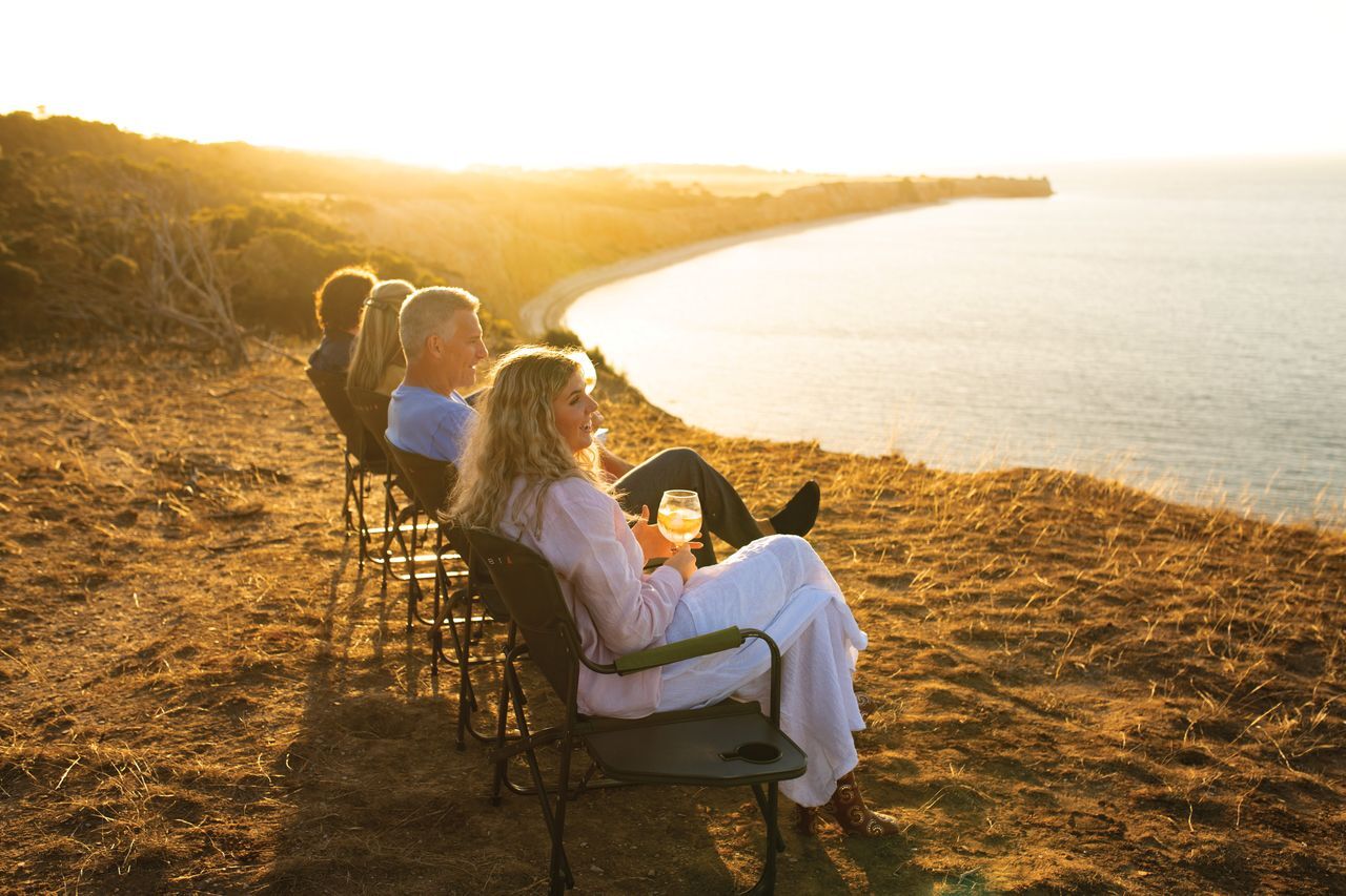I am completely OK with being upstaged by the kangaroos.” Tamsin Wendt follows my gaze out toward the grass and surrounding Oceanview Eco Villas on the Red Banks coast of Kangaroo Island, where a mob of about 20 kangaroos are gathering near a water pump. “Keep an eye out for the two nesting pairs of wedge-tailed eagles on the property,” she adds. “They love the wind.” We’re here off the coast of South Australia to explore what’s often billed as the Galápagos of South Australia: a 440,000-hectare natural playground filled with wildlife. Our hosts Tamsin and her husband Tim Wendt operate their two large, luxury villas within a 200-hectare farm, offering visitors bespoke sightseeing tours each day. “All the things we love most about the Island are also what guests are looking for when they visit,” Tim says. “The wildlife in the beautiful night skies, stunning coastline and landscapes – this is what makes the Island so special. It’s not uncommon for us to have guests who have been on safari in Africa and toured the real Galápagos, and are coming to Kangaroo Island specifically to see our ‘zoo without fences.’” Colloquially known as KI, Kangaroo Island is an isolated haven of wildlife encounters, like a little time capsule; much of the wildlife has been here for more than 10,000 years. The people population reaches 5,000, with the number of kangaroos hitting 40,000 and the extremely cute wallabies numbering almost 400,000. There are no dingoes, foxes or rabbits – no natural predators – so the flora and fauna mirror what South Australia was like prior to European settlement. The Wendts have lived on the island for more than 20 years, moving from Adelaide. “We came and never left,” Tamsin says. “Our kids grew up here. The island is just one of those places that gets under your skin.”