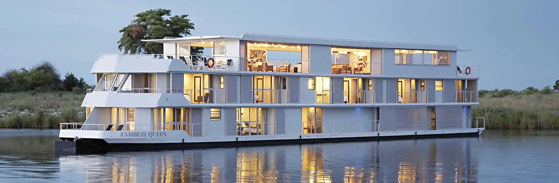 At the heart of each journey is the intimate 28-passenger Zambezi Queen, designed for up-close wildlife viewing along Africa’s legendary Chobe River. Eco-friendly and thoughtfully crafted, she features a solar heating system, low-emission generators, and water jet propulsion. Guests enjoy private balcony suites with unobstructed river views, an open-air Sun Deck with plunge pool, and complimentary South African wines, beer, spirits, and soft drinks throughout the day.