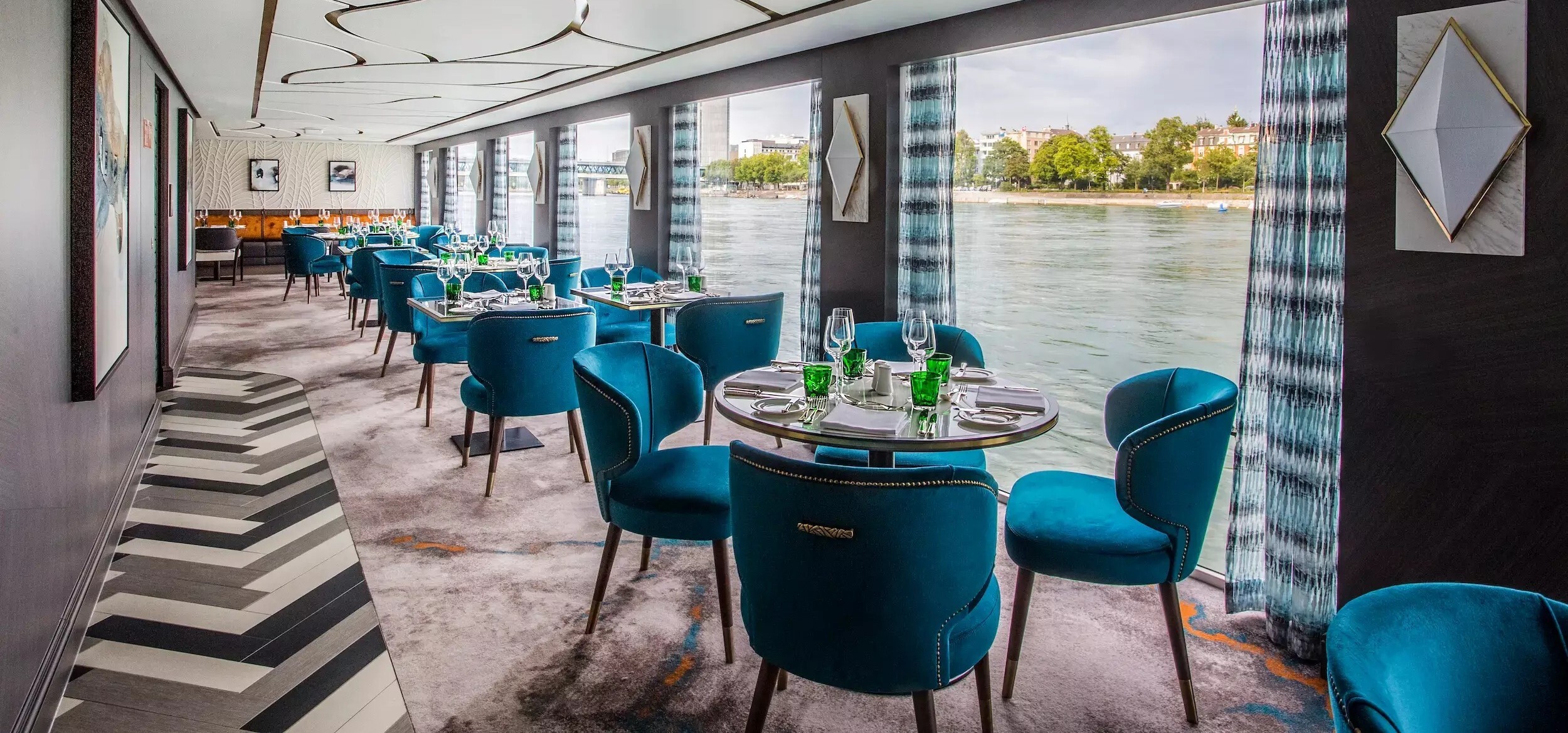 One of the highlights of your Riverside cruise will be your culinary discovery. The chefs will spoil you from breakfast to dinner, and in between, from the bread and jam made on board, to exquisite dishes based on the regions the ships are travelling through, using fresh, locally sourced produce. All dishes expertly paired with exquisite wines from the region you are sailing through. You will also have several dining venues and culinary concepts to choose from. Find delicious tapas at the Atelier, Michelin-inspired à la carte selections at the Waterside, grilled fish and juicy steaks at the Vista Bar & Grill paired with delicious wine and beer from the Rhine region and complete with picturesque views. You can also opt for a platter of grilled seasonal vegetables or a charcuterie board featuring local meats and cheeses as you watch the sun set. For the ultimate dining experience, try the elegant and exclusive Vintage Room. This private enclave dressed in fine linens, welcomes up to 10 guests for a seven-course wine pairing dinner on select nights.