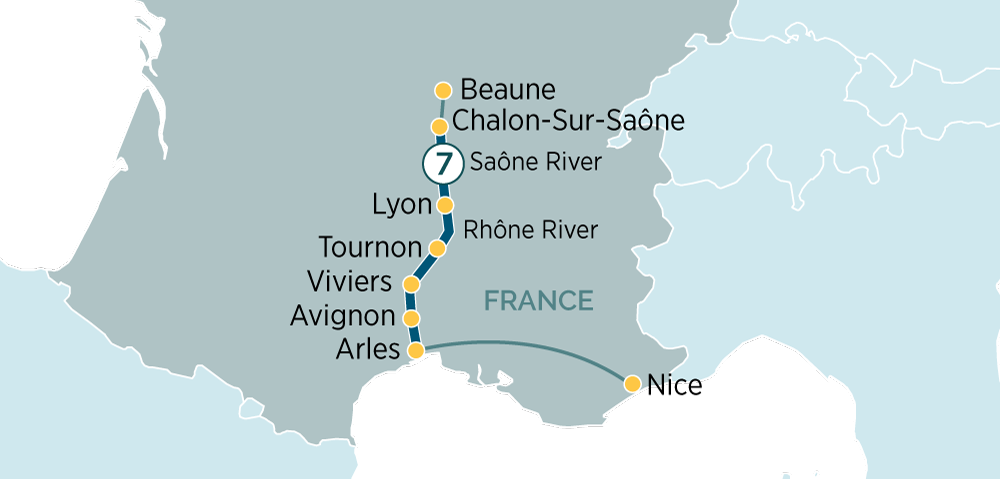 The Rhône and Saône rivers meander through the picturesque south of France, where you’ll discover picture-perfect villages, palaces and Roman ruins, as well as delicious Provençal cuisine.