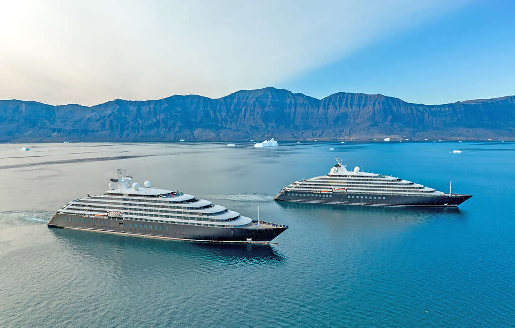 A truly remarkable event took place for Scenic Group when, for the first time in its history, Scenic Eclipse II, the world’s newest ultra-luxury Discovery Yacht, and Scenic Eclipse sailed side by side. The ships met in the Qeqertarsuaq channel in Western Greenland, where Scenic Eclipse was finishing her journey through the remote Northwest Passage and was headed to Disko Bay, and Scenic Eclipse II had just completed an Iceland-Greenland voyage and is heading out on an extensive expedition of the wonders of the world’s largest island.